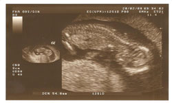SEMANA 12 . TÚ... Tú útero es demasiado grande para permanecer en tu pelvis y empuja por encima de tu hueso pélvico. Y TÚ BEBE... Pesa unos 14g y mide 8cm. En la eco puedes ver cómo mueve manos y piernas. |