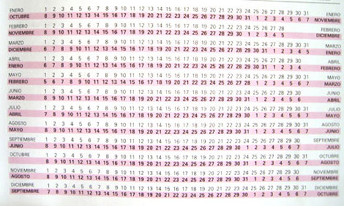 Calcula tu fecha apróxima de parto La fila de arriba sería tu primer día de tu última regla y la fila de abajo tu fecha apróximada de parto